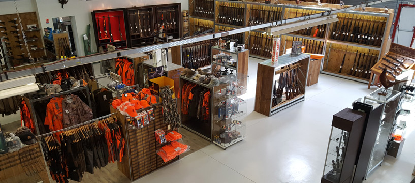 Notre magasin vous accueille du lundi au samedi. 1000 m² d'armes, de fusils de chasse, de carabines de chasse, optiques, accessoires, vêtements...